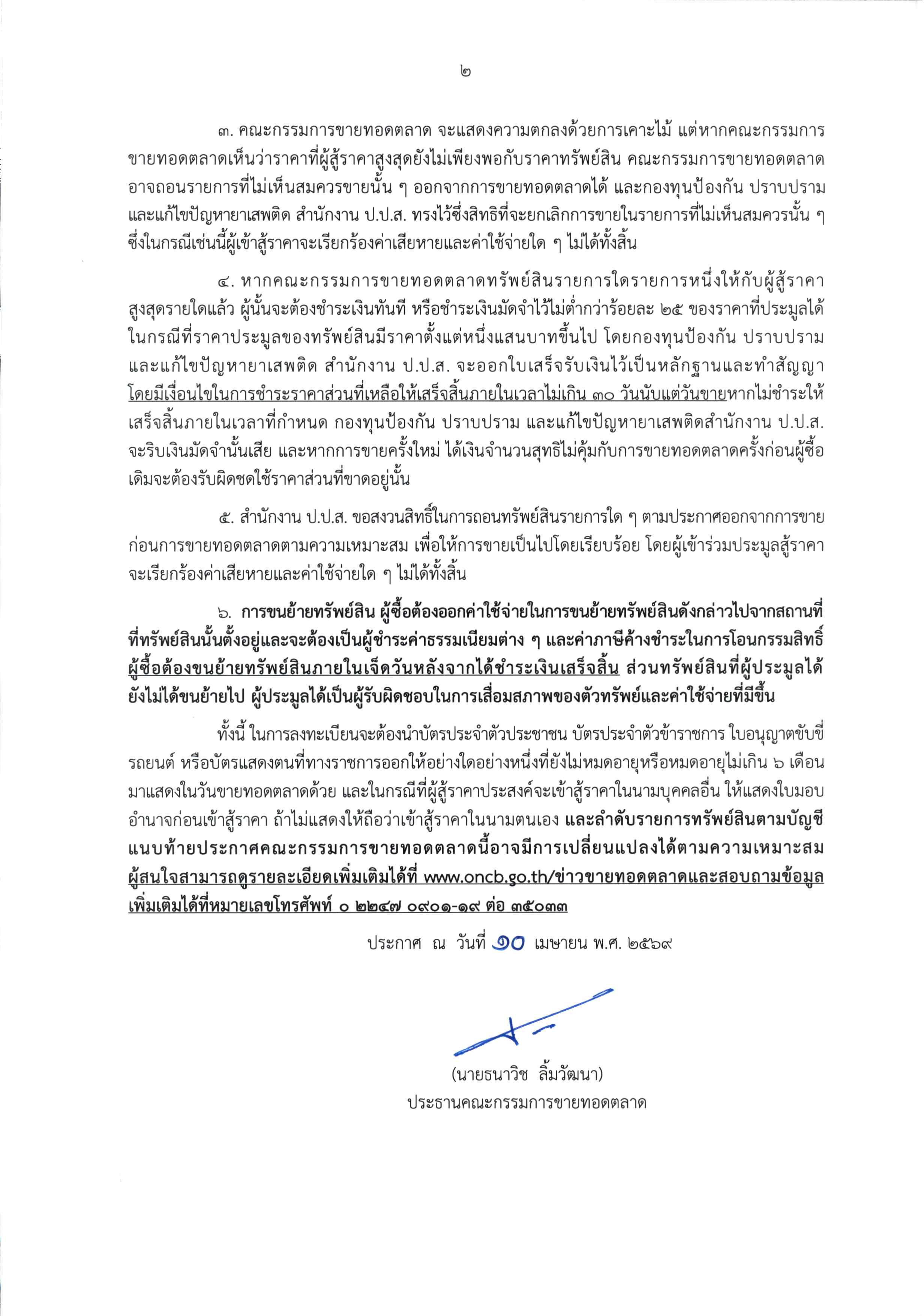 เรื่อง ขายทอดตลาดทรัพย์สินของกองทุนป้องกัน ปราบปราม และแก้ไขปัญหายาเสพติด