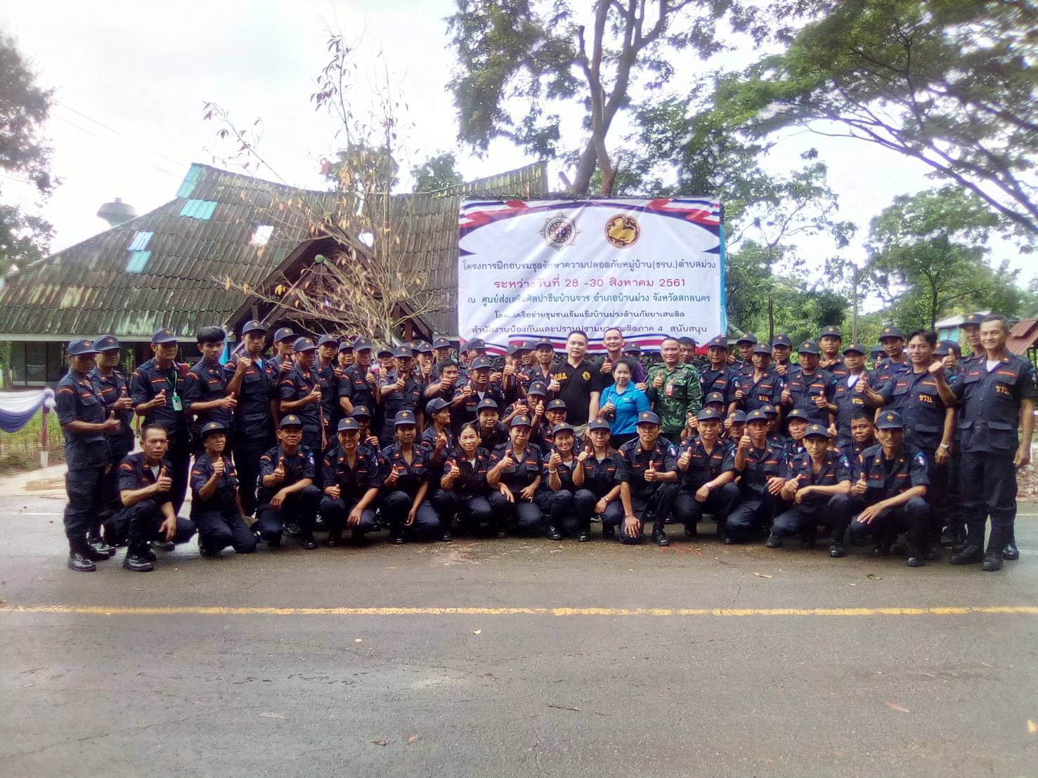 วันที่ 30 สิงหาคม 2561 ปปส.ภ.4 ร่วมโครงการฝึกอบรมชุดรักษาความปลอดภัยหมู่บ้าน (ชรบ.) ต.ม่วง อ.บ้านม่วง จ.สกลนคร. และเป็นวิทยากร ณ ศูนย์ส่งเสริมศิลปาชีพบ้านจาร อ. บ้านม่วง จ. สกลนคร จัดโดยเครือข่ายชุมชนเข้มแข็งบ้านม่วงต้านภัยยาเสพติด เพื่อส่งเสริมและพัฒนาให้ชุมชน สามารถดูแล ป้องกัน และเฝ้าระวังปัญหายาเสพติด ในหมู่บ้านชุมชนของตนเองได้ เป้าหมายเป็นแกนนำ ภาคประชาชน จำนวน 100 คน